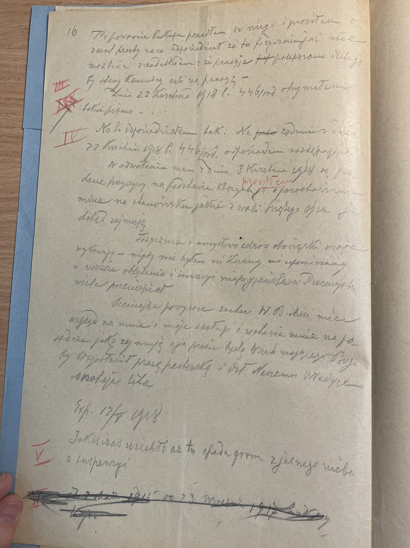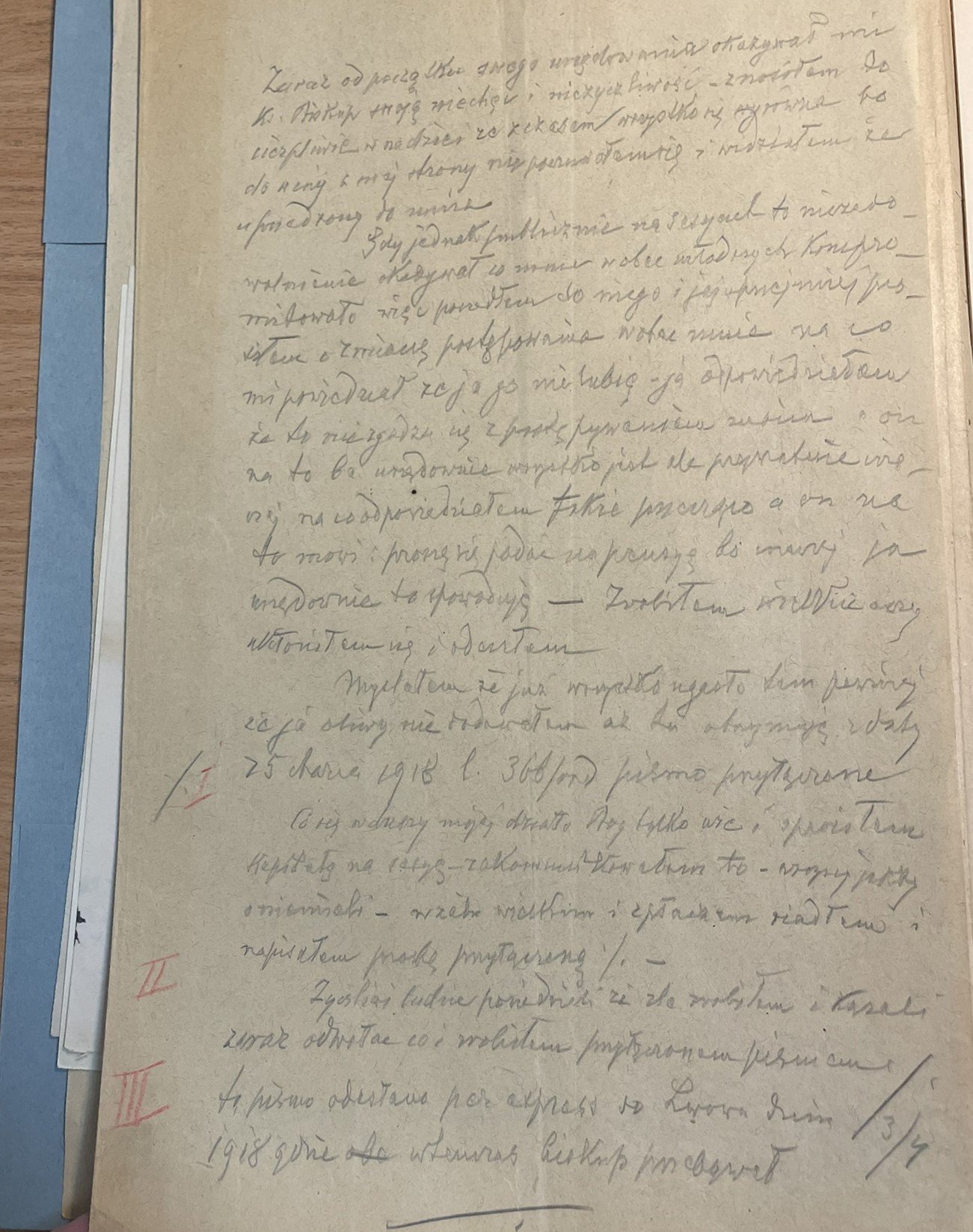 Życzliwi ludzie powiedzieli że źle zrobiłem i kazali zaraz odwołać co i zrobiłem przyłączonem pismem. To pismo odesłano per expres do Lwowa dnia 3/4 1918 gdzie wtenczas biskup przebywał.