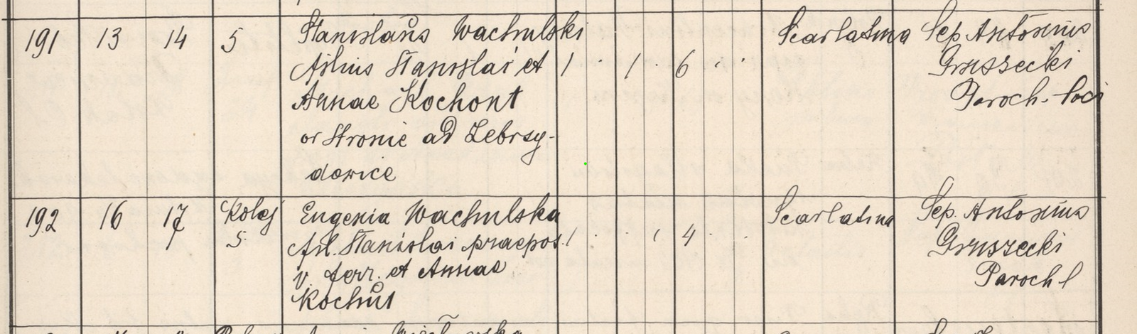 Właścicielami Błażkówki byli Anna i Stanisław Wachulscy, mieszkający wówczas w Krakowie – Podgórzu. Próbowałam znaleźć informacje, kim byli i w jaki sposób weszli w posiadanie tej działki. Kwerenda geneteki umożliwiła dotarcie do kilku metryk, związanych z tą parą.