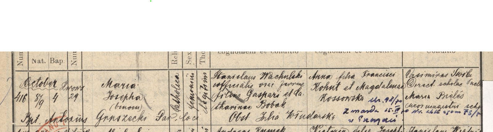 - Eugenia Maria ur. w 1898 r. w Stryszowie (par. Stryszów) – zm. na szkarlatynę 16.08.1902 r. w Krakowie-Podgórzu (par. Św. Józefa)