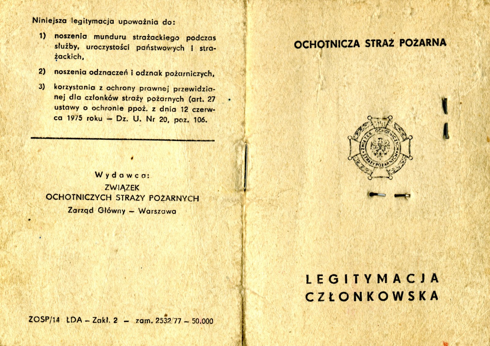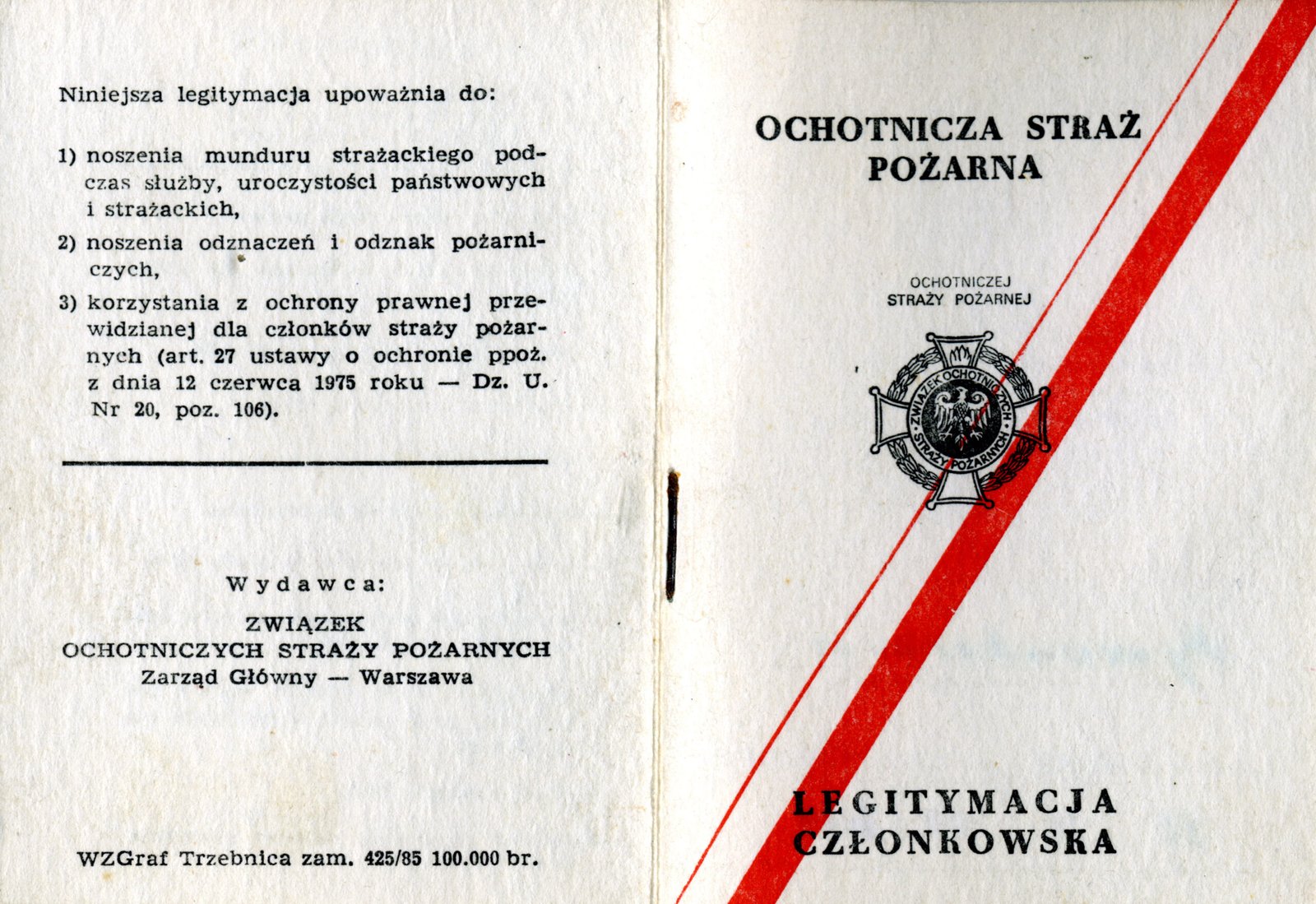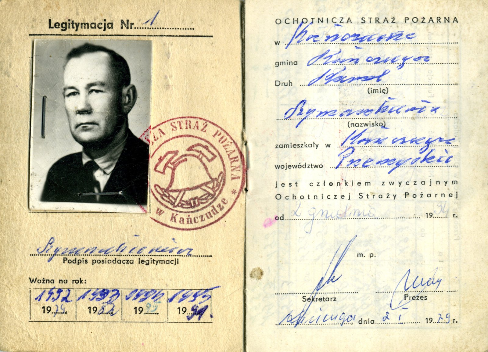 Legitymacja członkowska Nr 1 z dn. 2 stycznia 1979 r. Ochotniczej Straży Pożarnej w Kańczudze.